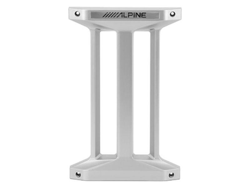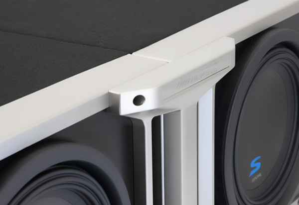 The KTX-H10 was designed for both function and form. The sturdy metal hardware follows the outline of the enclosure ports and links two Single 10” Alpine Halo Preloaded Subwoofer Enclosures together to create a dual subwoofer-enclosure. To create a seamless installation look, the KTX-H10 shares the same clean, silver finish as the enclosures and features a stainless steel Alpine badge on the top of the bracket.