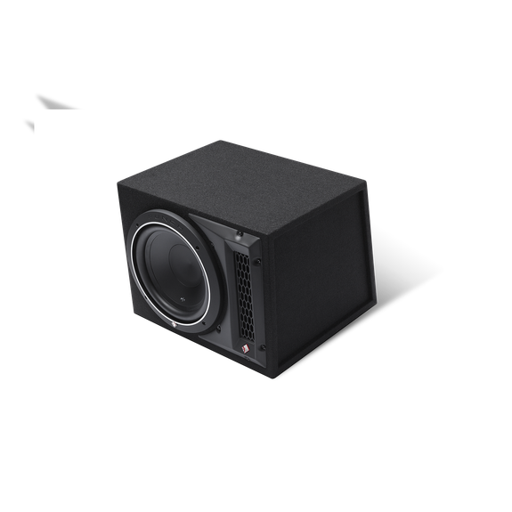 The P1-1X10 is a single P1 10” vented enclosure with 250 Watts RMS power handling wired to a 4-Ohm load. The enclosure is constructed with 5/8” MDF, covered in high density carpet, and features quick release compression terminals.