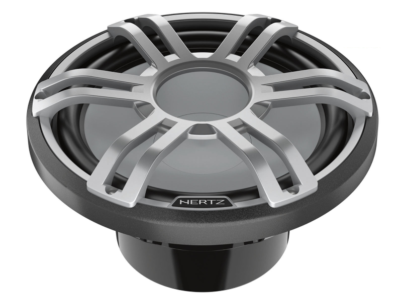 The new HMS 12 marine sport grille subwoofer is optimized to perform in open baffle applications for deep and punchy bass without the need to build a dedicated enclosure. HMS 12 is available at 2 or 4-ohm single voice coil versions, featuring a stunning 500 W continuous power handling. The sport grille, featuring built-in LEDs, can be easily and painted the perfect color for your vessel. The motor and suspension design is optimized for high-power, infinite-baffle operation featuring long linear excursion capability for tremendous output with low distortion. Hertz Marine subwoofers not only add tons of bass output to your system but also relieve the main speakers from the hard work of reproducing the lowest frequency range, thus maximizing overall system performance for unlimited sound pressure and emotion!