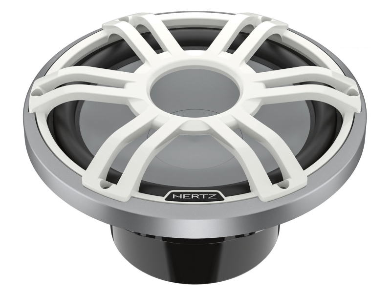 Hertz HMS 12 S2-LD-SW marine subwoofer is available in 2 or 4-ohm single voice coil versions, featuring a stunning 500 W continuous power handling. The sport grille, featuring built-in LEDs, can be easily painted the perfect color for your vessel. The new HMS 12 marine sport grille subwoofer is optimized to perform in open baffle applications for deep and punchy bass without the need to build a dedicated enclosure. The motor and suspension design is optimized for high-power, infinite-baffle operation featuring long linear excursion capability for tremendous output with low distortion. Hertz Marine subwoofers not only add tons of bass output to your system but also relieve the main speakers from the hard work of reproducing the lowest frequency range, thus maximizing overall system performance for unlimited sound pressure and emotion!