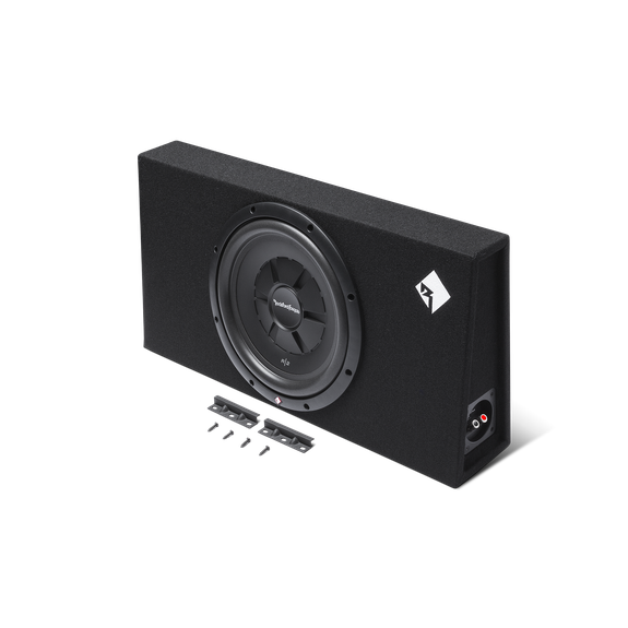 When you have no space for bass, our PRIME R2S 12" shallow loaded enclosure is sure to be a perfect fit for your ride and your budget. These shallow loaded enclosures can fit in tight spaces due to the slim-line depth of 3.25" on the top and 5.25" on the bottom. The wedge design is optimized for single-cab trucks with limited seat travel. Are you ready to rock out? Yeah, we thought so.