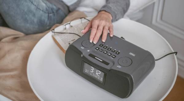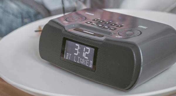 The bass, treble, and balance controls allow you to adjust the sound to your liking, without taking up space on your table or night stand.