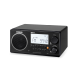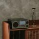A digital table top radio with an acoustically-tuned wooden cabinet and an infrared remote control. Featuring Radio Data Service (RDS) and a large clear display screen showing the artist, radio station, name and other information.