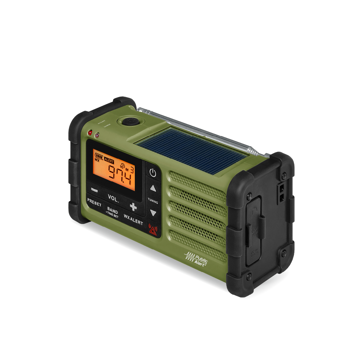 The SG-112 is a rugged, digital AM / FM Public Alert certified radio with 3 charging modes. No matter where you are, this radio lets you listen to your favorite music, news, and radio programs while keeping you safe with up-to-date weather forecasting and alerts.