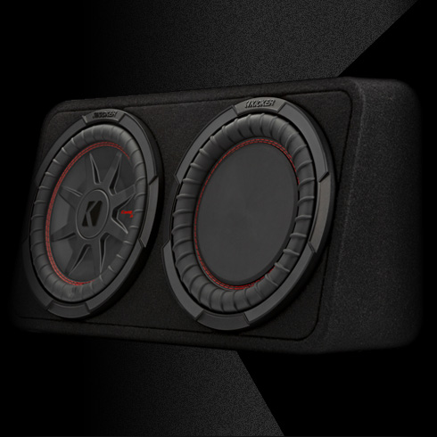 Now even more efficient and sporting a slick, blacked-out cone, the CompRT® Loaded Enclosures deliver huge bass in a tiny space!