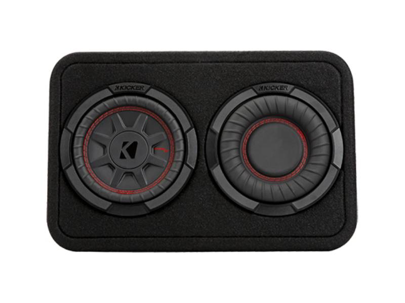 The CompRT 6-3/4-inch Subwoofer Enclosure is the easiest way to get great bass under your seat, behind your back bench or in your cargo area. It comes loaded with a reFLEX™ passive subwoofer and CompRT active sub for extremely low bass, then carpeted and loaded with a single 2-Ohm terminal.