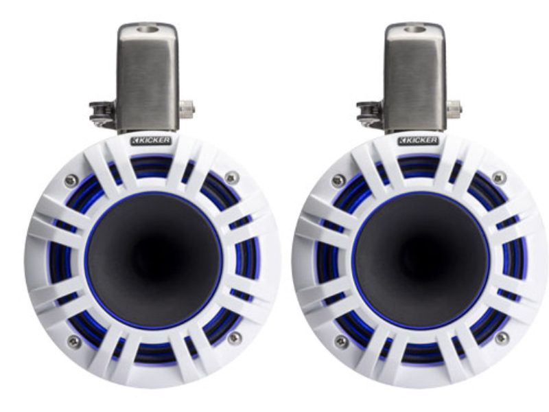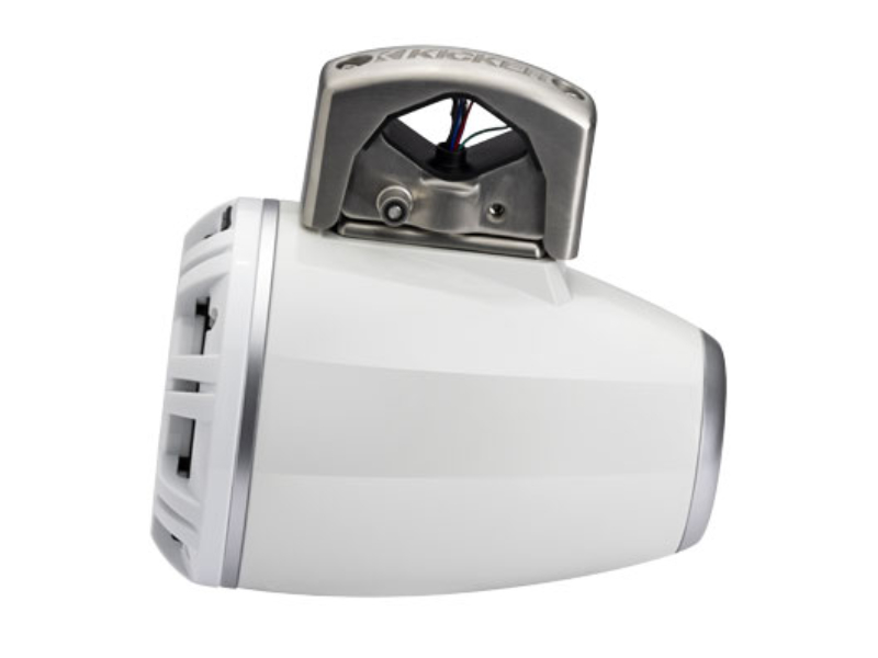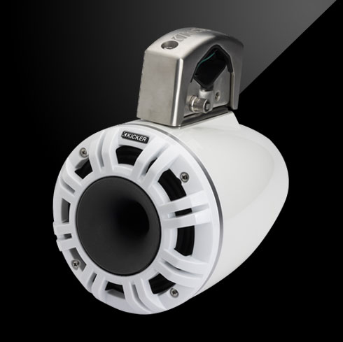 Award-winning KMXL Horn-Loaded Speakers, dropped inside a pair of tough black or white KICKER tower cans for any all-weather use. Loud, clear, and convenient.