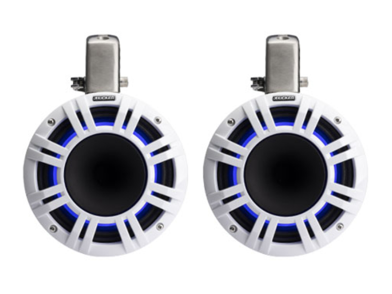 Award-winning KMXL Horn-Loaded Speakers, dropped inside a pair of tough black or white KICKER tower cans for any all-weather use. Loud, clear, and convenient.