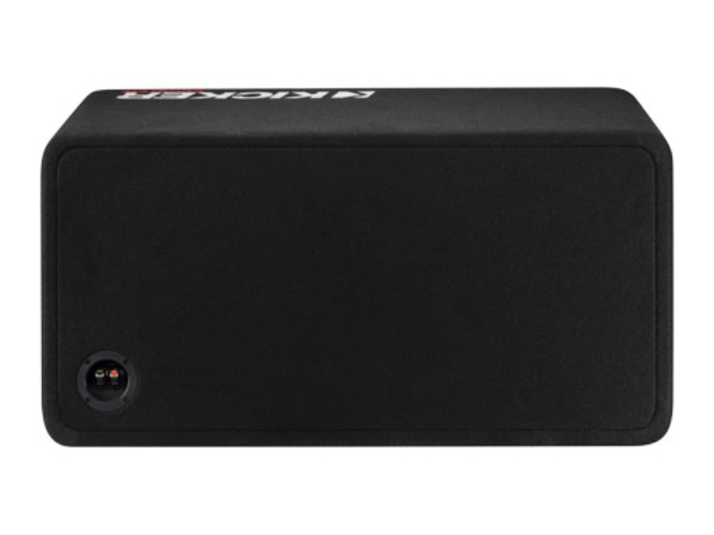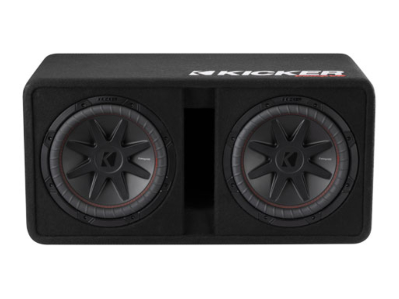 CompVR Subwoofers loaded in factory-tuned loaded enclosures have been reengineered for incredible KICKER bass with Forced-Air Cooling™. You get cool, reliable speakers that last and last. Thick black carpeting gives the tough enclosure a sleek, refined look. The front-facing tuned port raises the bar for acoustic efficiency, creating incredible bass levels with minimal amplifier power.
