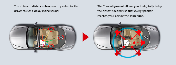 By selecting the speaker type and the distance to the center of the listening position, the receiver will automatically adjust the timing of the sound output from each of the speakers so that the sound from each of the speakers will arrive exactly at the same time to the listening position.