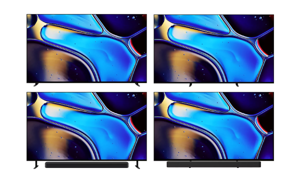 Absolute flexibility. Our 4-way stand gives you the choice of an outside position, an inside position for smaller shelves or two soundbar positions to meet your viewing preference.