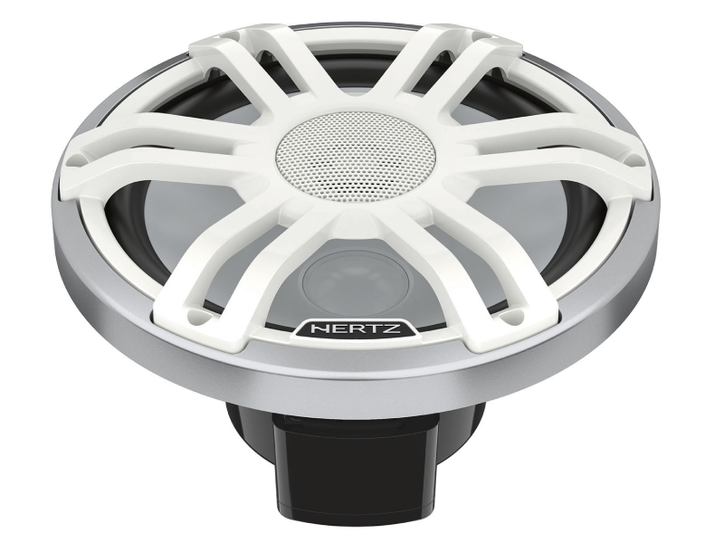 HMX 8 S-LD-SW marine coaxial speaker features a white sports grille for a perfect match with sporty boats. The coaxial speaker is engineered to operate in open water, pleasing you with the incomparable emotions of music for years on end thanks to the special ASA plastic grilles and polypropylene cone with co-molded Santoprene surround. The Aramid fiber spider with silicone-insulated lead wire ensures durability and constant performance over time. Parts and assembly methods are designed to meet high-humidity marine environments, ensuring the best audio performance season after season.