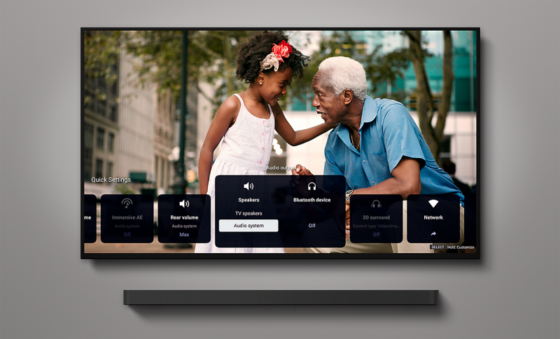 Easily control features such as sound field and volume using just the TV remote. With an integrated UI, soundbar sound settings automatically appear on the BRAVIA Quick Settings menu.914