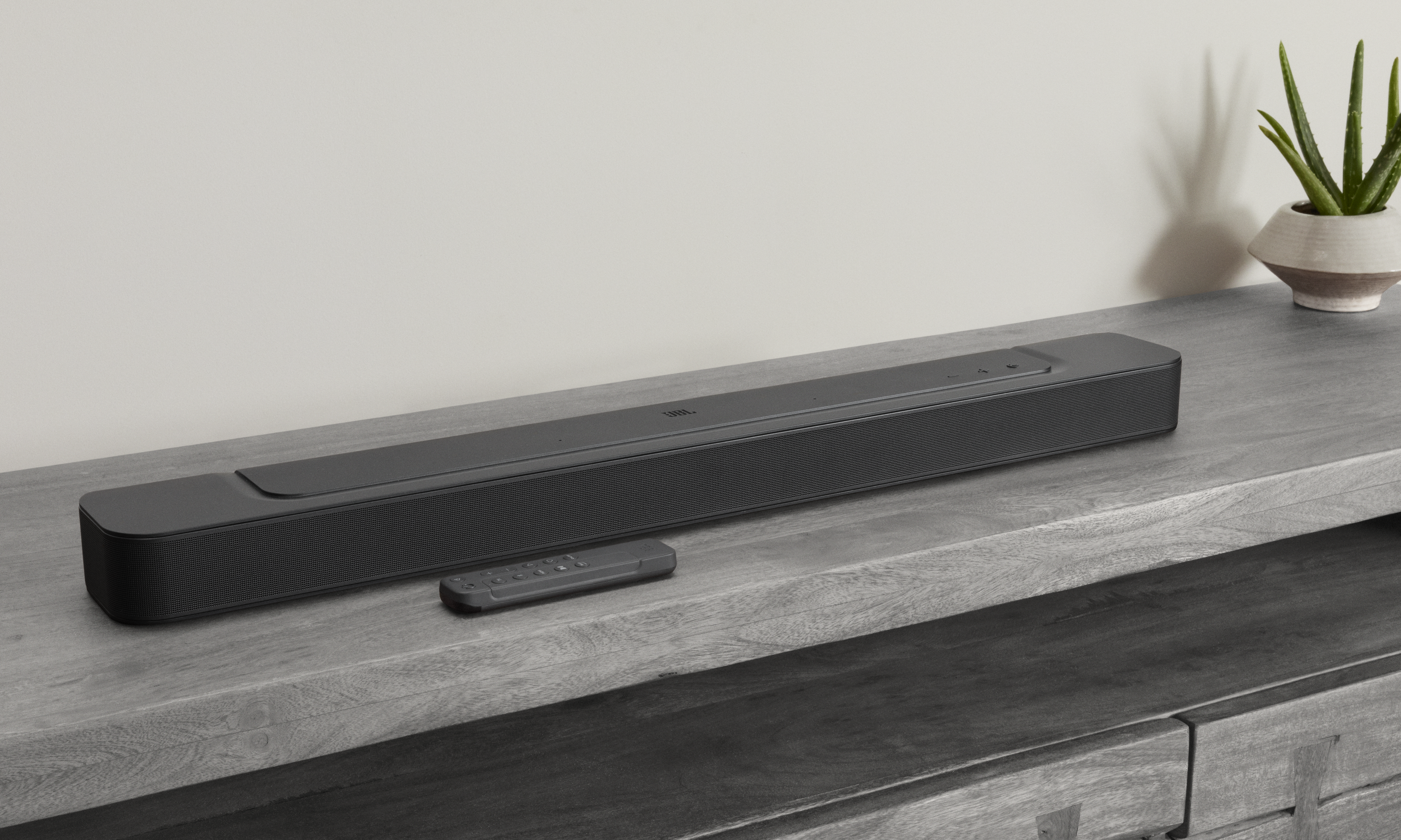Don't let the compact size of the JBL Bar 300 fool you. It gives your home cinematic experience a boost of punchy bass from its built-in bass port, adding more excitement to every action scene and more depth to every song.