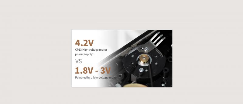 The CP13 utilizes a custom oversized pure copper flywheel 30.4mm in diameter and 4mm thick. This flywheel is made of higher quality materials and is larger than those typically used in cassette players. This helps to ensure the tape reel moves as smoothly as possible during playback and thus keeps Wow and Flutter ultra-low, ultimately resulting in more stable and better quality sound.