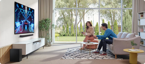 Use your Samsung TV remote to control key soundbar functions, including power, volume and sound effects. You can access everything you need with the single remote. Enjoy full control and have one less thing to keep track of.³