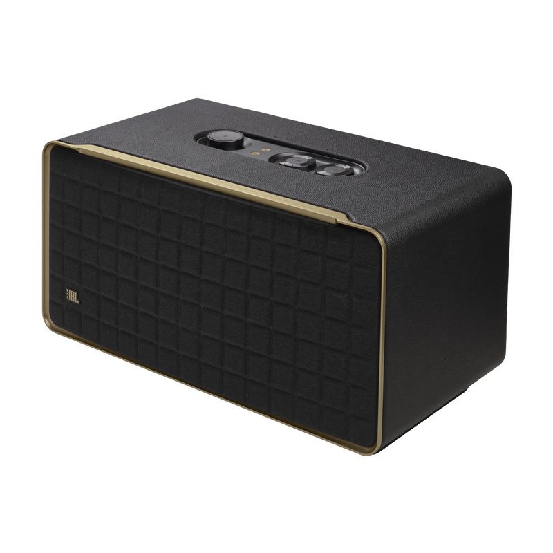 The JBL Authentics 500 delivers the iconic style inspired by classic JBL heritage designs, for a look that complements any room, easily filling even the largest space with superior JBL sound. And the speaker's premium aluminum frame, custom leather-like enclosure, and reimagined Quadrex grille really show the attention we paid to each visual detail, right down to the special JBL signature pattern surrounding the downfiring woofer.