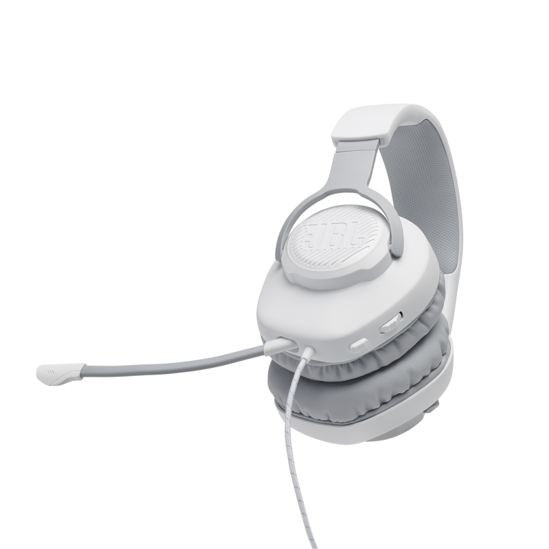JBL Quantum 100 headset lets you rally the troops and opponents with clarity. The detachable, voice focus directional boom mic comes with mute features.