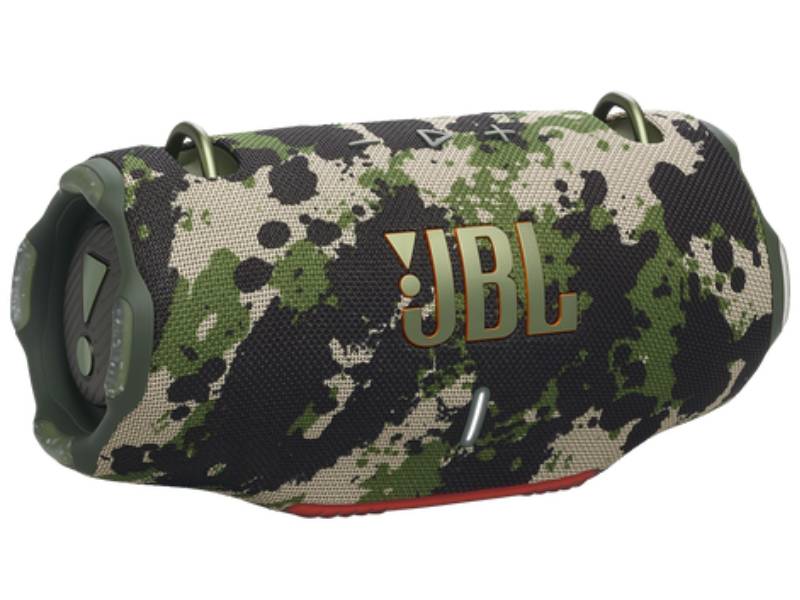 It's time to live loud! The JBL Xtreme 4 portable waterproof speaker delivers next-level massive JBL Pro Sound with amazing dynamics, even at top volume, thanks to two powerful woofers and two tweeters. Dual pumping JBL passive radiators give you deeper bass that moves you. Want to take your music outside? The handy shoulder strap makes it easy, while the rugged rubber bumpers and IP67 waterproof and dustproof rating mean that a sudden downpour or a dunk in the lake won't stop the fun. When it's time to create an even bigger audio experience, pair two Xtreme 4s for stereo sound. Or for your next party, use Auracast to connect the Xtreme 4 with any compatible JBL portable speakers, so your friends lounging poolside will vibe to the same playlist as the ones chatting indoors. 24 hours of playtime and a convenient power bank for your device mean you won't have to recharge until morning. All this, plus it's made with recycled plastic and recycled fabric. The JBL Xtreme 4 brings thrilling sound with you—everywhere.