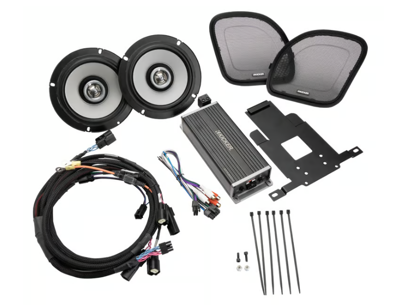 Add great sound to your 2015 - 2023 Harley-Davidson Road Glide "Shark-Nose" fairing with this complete audio lid kit. It’s a complete audio solution loaded with waterproof KICKER 6-1/2-inch Coaxial Speakers (2 Ohm) and pre-measured, terminated speaker harnesses.