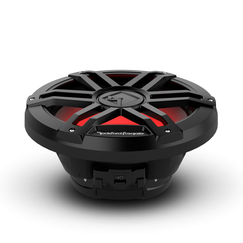 The M1 series of Element Ready™ subwoofers are designed to pair with the Rockford Fosgate Color Optix™ Controller and RF Connect App through its Deutsch™ and Amphenol™ connectors integrated into the basket. This combined with their IP67 certification make these speakers Element Ready™ and truly purpose built for marine applications. To compliment the plug and play connectivity and streamline installation, M1 subwoofers are equipped with a VersaSwitch™ to make changing impedance between 1 and 4 ohms as easy as flipping a switch.