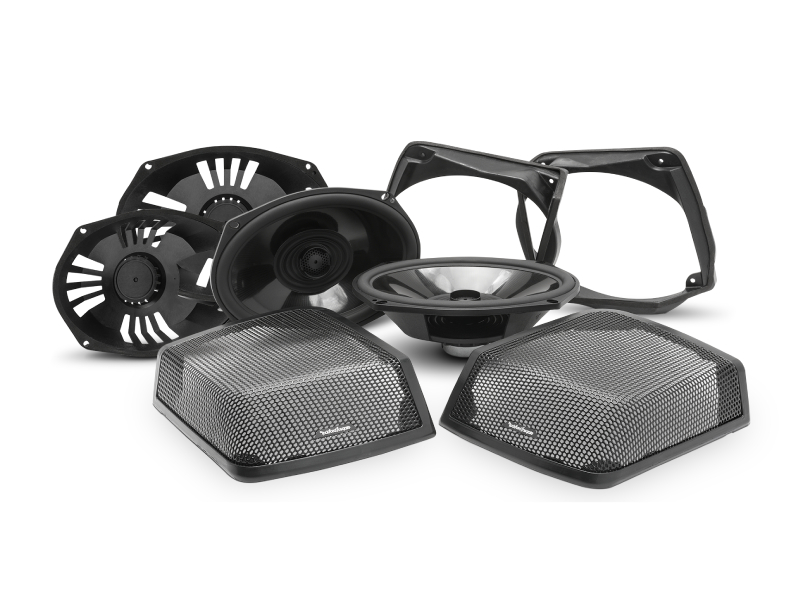 Retrofit kit allows addition of rear speakers on your existing factory bag lids and plug directly into a Rockford Fosgate front audio kit that utilizes the Power T400X4ad, TM400X4ad, and M5-800X4 4-channel amplifier. Eliminates need to paint and color match. Not designed for factory amplifiers. Refer to our COMPATIBILITY chart to verify fitment before purchasing. TMS69BL14 & TMS69BL9813 Installation