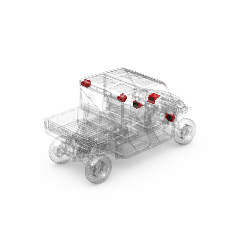 Components are able to withstand shock and vibration conditions common with outdoor vehicles.
