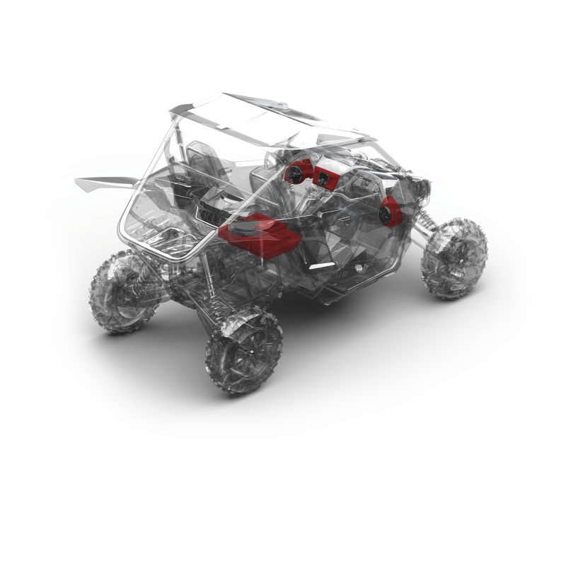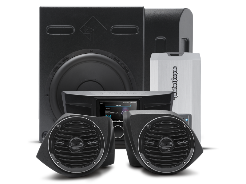 Building on the Stage 2 kit, we add in our full amplifier mounting and installation kit. This literally amps up your sound with the addition of a Power series small chassis amplifier as well as our under seat mounted woofer enclosure. If you're ready for big bass while running the trails, then this is for you.