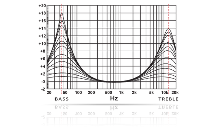 Onboard equalizer with up to +18dB @ 45Hz and/or up to +12dB boost at 12kHz.