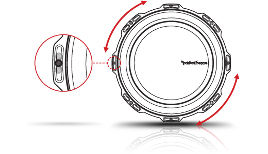 The slot mounted frame pattern allows fine-tuning of the subwoofer's mounting position.