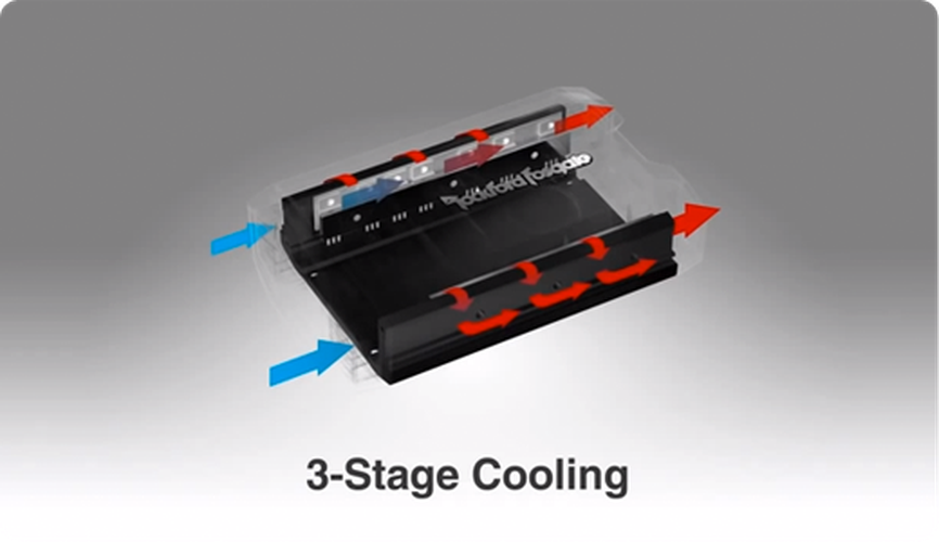 3-stage airflow method effectively exhausts heat and ensures your amplifier runs cooler for optimum performance.