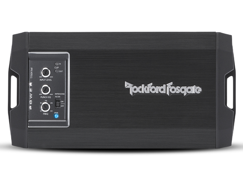 The Power T750X1bd 750 Watt mono, ultra-compact amplifier is built on Rockford Fosgate’s patented Class bd technology platform. This design creates a highly efficient design that reduces the electrical impact on the vehicles charging system by using the efficient Class D technology while maintaining fidelity combining it with Class b topology. Flexible vehicle integration is achieved via a configurable input harness with Molex style connectivity that accepts both RCA and speaker level signals while our differential input circuitry eliminates signal noise from entering the amplifier resulting in a clean audio signal. When using speaker level input signals, the amplifier also has integrated auto turn-on capabilities and converts its remote input terminal to an output that can be used to turn-on additional amplifiers. This can eliminate the need of sourcing a separate remote turn-on signal for the amplifier from the vehicle. Top mounted controls allow easy access to the built-in low pass crossover, patented Punch EQ boost circuit and our patented C.L.E.A.N. input/output clip detection circuits. The 3-stage thermal lock extrusion with dual fan forced induction keeps everything cool while our real-time thermal/protection schemes safeguard the amplifier in the event of overheating or short circuit conditions. The unit is also compatible with our Punch PLC2 remote level controller and is ideal for those installations where you need a compact amplifier that can produce high output power.