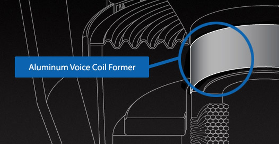 Rockford Fosgate subwoofers use anodized aluminum voice coil formers that provide superior heat dissipation (up to 100° at full power levels). Unlike traditional plastic substitutions, aluminum acts like a heat-sink to quickly dissipate thermal build-up on the voice coil. This keeps subwoofers cool during high SPL conditions.