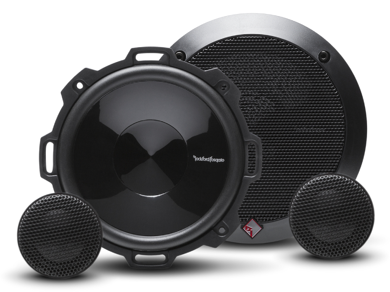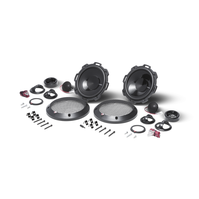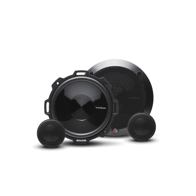 The P152-S is a 5.25” 2-way component system with 1” soft dome tweeters and is rated at 50 watts RMS. The system includes a pair of tweeters, two woofers with grilles, integrated crossovers, and mounting hardware.