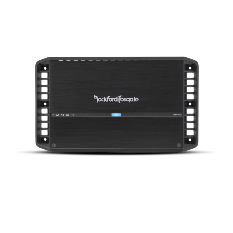 The P500X2 is an excellent way to PUNCH up your sound system without monopolizing your entire trunk - that way you have more room for subs! With its massive output stage, this amplifier is best suited for driving a pair of 8-ohm SVC subwoofers or four 2-ohm DVC subwoofers. Remember to utilize the recommended power and speaker cables to optimize power delivery.
