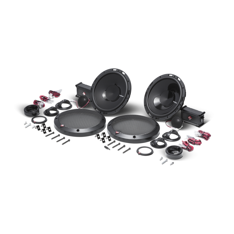 Car audio fanatics will love the Punch series 6.5" component system. It features a Flex Fit2™ basket to ensure compatibility with U.S., European, and import vehicles. European installers will love this new "European Basket" to easily fit a variety of VW, Citroen, and Vauxhall models. The system also features an external crossover for more precision of frequency cutoff.