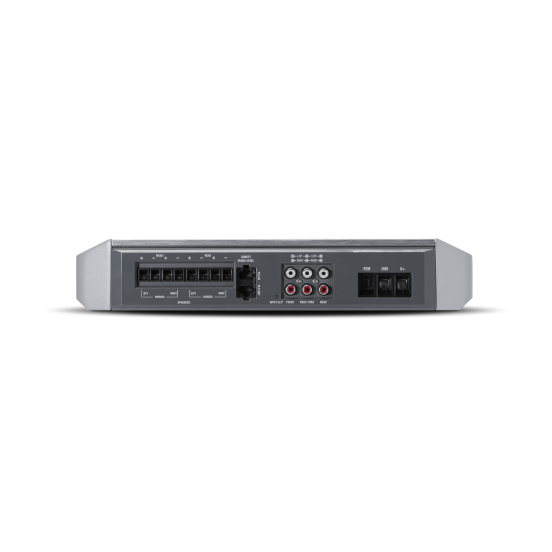 The Punch PM600X4 multi-channel amplifier is versatile to power any audio system configuration. In addition to 4-channel stereo mode, you can bridge both channels to create a high power 2-channel amp, or run stereo speakers on the front with subwoofers on the rear in 3-channel mode. The variable HP/LP crossover and built-in Punch EQ allows for precise tuning of Bass frequencies and the Pass-Thru RCA jacks provide flexibility as your system grows and keeping Y-adapters to a minimum.