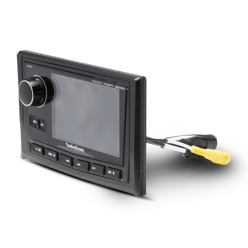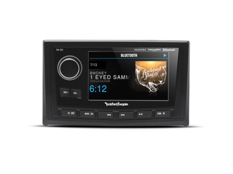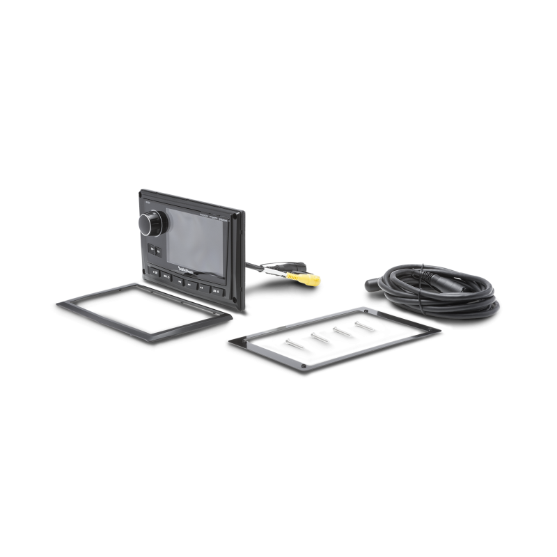 The PMX-8DH, used with the PMX-8BB hide away media receiver is a wired display head controller giving you access to all the receivers capabilities. It features a 5" ultra bright color TFT display for optimum viewing even in full sun that is optically wet bonded to prevent any dust or moisture penetration. It is IPX6 rated and uses a water resistant rotary encoder knob with white LED button illumination. Additionally it features front panel illumination and sub controls, composite video input as well as a conformal coated PCB for elemental protection.