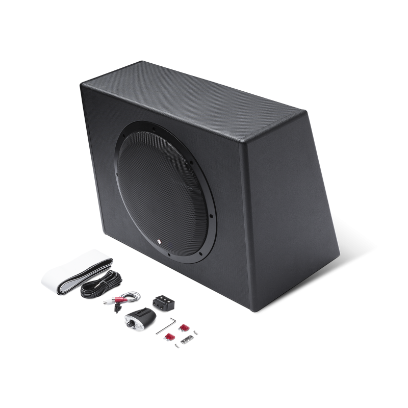 The P300-12 powered subwoofer is an “all-in-one” solution when adding bass to a factory system or just to save space. This model features a 12” subwoofer in a sealed enclosure powered by an internal 300 watt amplifier.