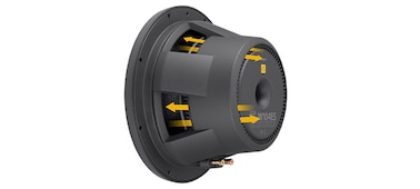 The Five-beam Frame design disperses resonance while the integrated Dynamic Air Diffuser ensures efficient air circulation for smooth cone travel and cooling of the voice coil.