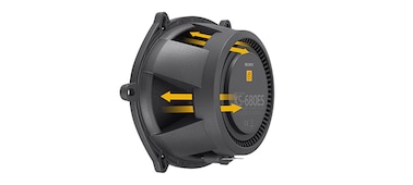 The Five-beam Frame design disperses resonance while the integrated Dynamic Air Diffuser ensures efficient air circulation for smooth cone travel and cooling of the voice coil.