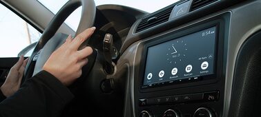 The new button design features large keys to seamlessly fit with the sleek display. Access volume, source, sound settings and voice control, for safe and easy operation on the road.