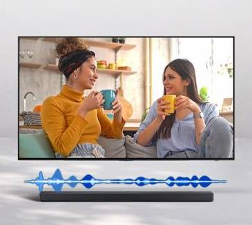 With Q-Symphony, AI separates voice and background sounds for playback through the optimal channel. Now you get crisper dialog and more immersive 3D surround sound, playing through your TV speakers and soundbar in complete synergy.