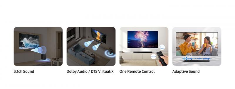Get the optimal listening experience for each scene. Your soundbar recognizes the type of content you’re watching and automatically adapts audio settings to produce clear voices and detailed sounds.
