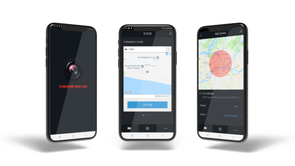 Geo Fencing allows parents or fleet managers to be updated on vehicles’ comings and goings. The U1000 will send a push notification through the THINKWARE CLOUD mobile app if a vehicle enters or exits a pre-selected geographic zone. The radius of the zone can be set easily by simply tapping on the Google Maps display and selecting the desired radius, from 100m all the way up to 600km. Users can set up to 20 different geo fences.