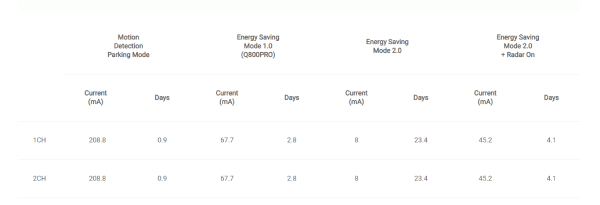 Compared to Energy Saving, Energy Saving 2.0 takes energy saving efficiency to the next level and increases up to 26 times the total duration of the dash cam's Parking Surveillance mode. The dash cam conserves energy by going on standby when entering Parking Surveillance mode and wakes up to record events triggered by impacts only.