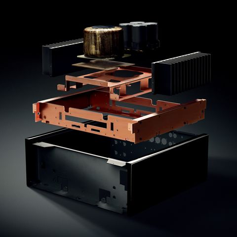 An expression of deep, rhythmic and melodious bass generates feeling from the music, the story of the music. The Mechanical Ground Concept achieves this expressive and rhythmic bass by maximising rigidity and reducing any unwanted vibration. The large power transformer, block capacitors and heat sink are directly bolted to the chassis delivering greater rigidity, while the feet, with bolts directly welded to the main chassis, provide further reinforcement for absolute rigidity. The A-S3200 has an original Rigid Streamlined Construction that further suppresses vibration.