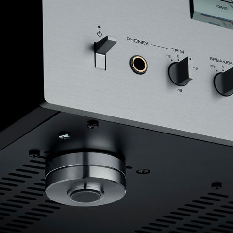 Completing the rigidity of the amplifier are the heavy-duty brass feet used with either spikes or the scratch-resistant base for delicate surfaces, originally engineered exclusively for the flagship M/C-5000.