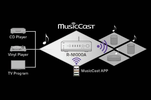 Entertainment content from your records, TV, CDs, and other sources connected to the R-N1000A can be sent to other MusicCast devices and enjoyed throughout your home. Moreover, all MusicCast products have been designed first and foremost for superior sound quality. High-res audio formats including Apple Lossless (ALAC) up to 96 kHz, WAV, and FLAC or AIFF up to 384 kHz are supported.