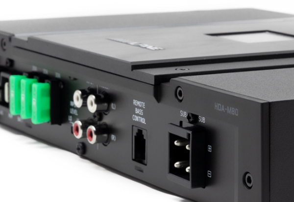 Powering a Hi-Res sound system without contributing noise during playback requires efficiency and precision and the HDA-M80 was intentionally designed to provide impressive power output to the system while ensuring the purest audio performance. The amplifier’s wide dynamic range capability provides impressive output in a compact chassis that fits most vehicle applications.